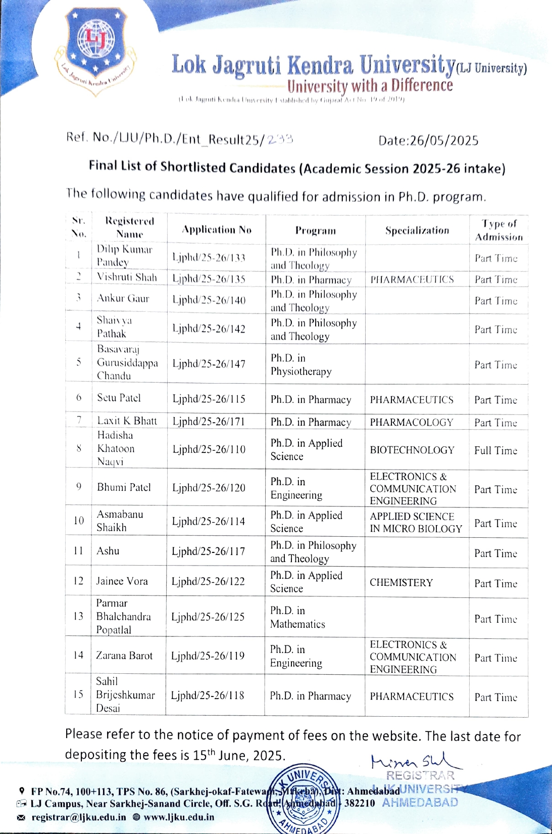 info@ljku.edu.in