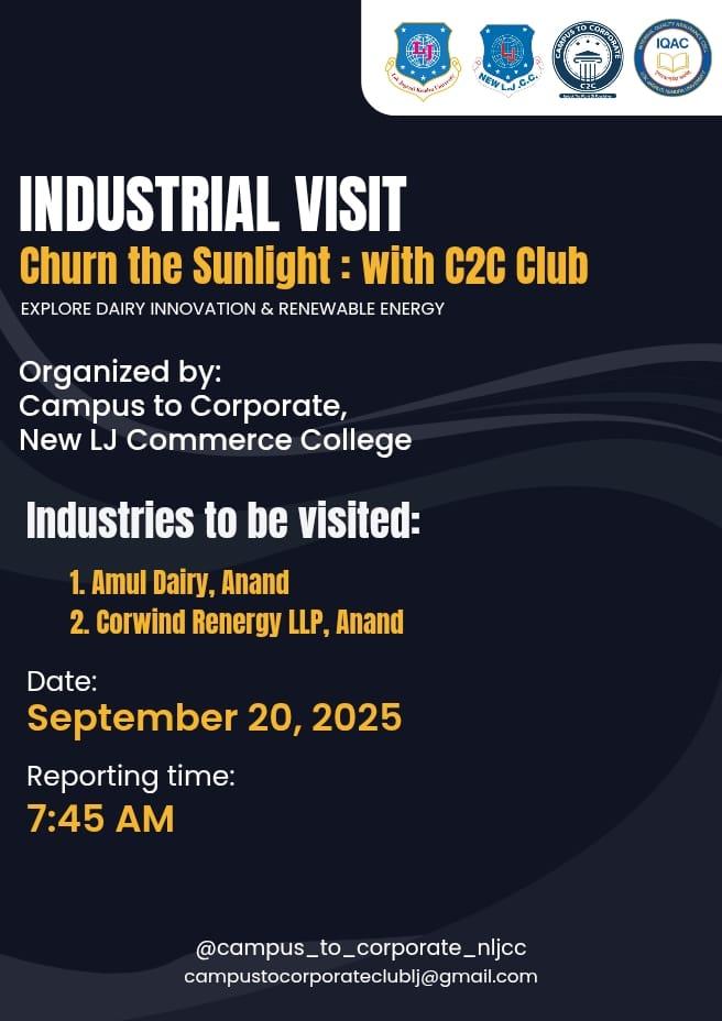 π From Campus to Corporate! π Step into the world of Industry! Join us for an exciting visit to *Amul* & *Corwind* *Renergy* *LLP*gg be on *20th Sept. 2025* . Donβt miss this journey from learning to doing! πΌπ #BeyondClassrooms #FutureReady