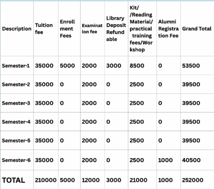 *Rs. 3000/- as Library fee is refundable after the completion of degree course